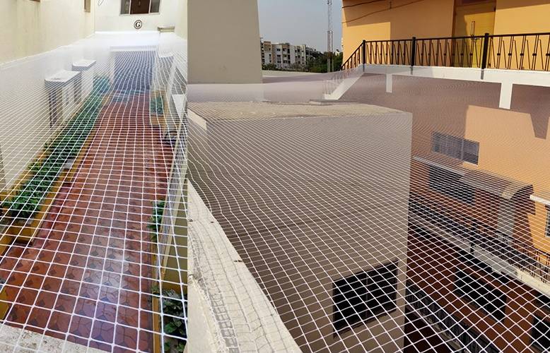 Every Apartment, Independent Houses, Commercial Buildings, Government Buildings, School & Colleges, Educational Institutions which have empty spaces for ventilation for natural light & for natural air flow. These open places sometimes become a curse to many. We have heard many tragic stories of people who lost their valuable lives by falling from open places, even many got major damages also. Dhanalakshmi Safety Nets are Professionals in Fixing School or Open Space Safety Nets in Hyderabad, You Can Search Online for Children Safety, Staircase Safety, Elders Safety, Pets Safety, Kids Safety, Infants Safety to Get Us. We Use High Strength Anchor Bolts, Thick Border Ropes along with 2.5mm thick 30gap HDPE Nylon Net to give high protection.