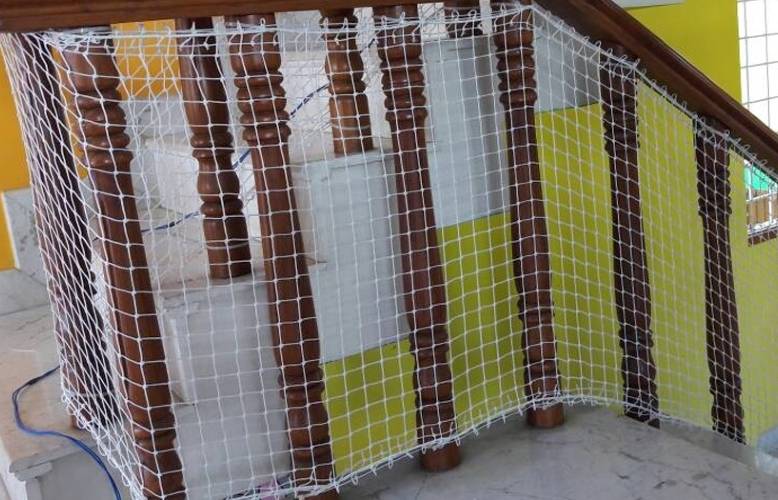A Staircase safety net is a net that protects the people and valuable things by restraining the distance they fall. Our experienced team fixes the nets at any shaped staircases. Staircase safety net is needed if you have pets or kids at home.